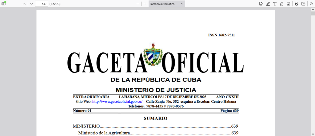 A tenor con la Resolución 186, del Ministro de la Agricultura, en correspondencia con Ley 148, del 2022 sobre Soberanía Alimentaria y Seguridad Alimentaria y Nutricional, y las resoluciones del Ministro de Economía y Planificación