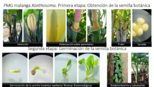 Dijo que “la malanga Xanthosoma spp. es poligénica lo que permite generar nueva variabilidad genética mediante la recombinación de genes de parentales diferentes. Esto es radicalmente superior al método de selección clonal, que solo explota la variación preexistente y está sujeta a la reversión”.