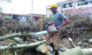 “Estamos luchando duro en la recuperación de Santiago de Cuba. Estábamos aquí durante el paso del huracán, y luego en la recuperación, sobre todo con las brigadas de motosierras, hemos tratado de ir desobstruyendo las calles, y la madera de tantos árboles destrozados se usa para las propias reparaciones y para hacer carbón.