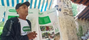 En la punta de una loma tiene su finca Ernesto Rebollar. Lleva como nombre Homenaje y se dedica al cultivo de hortalizas diversas y plantas protéicas en terrazas y cercas vivas. “He tenido la oportunidad de aprender muchísimo en este proceso de transición agroecológica. Somos 11 fincas y quisiera que en otro proyecto seamos 11 más, porque a cada uno siempre nos va a faltar algo”.